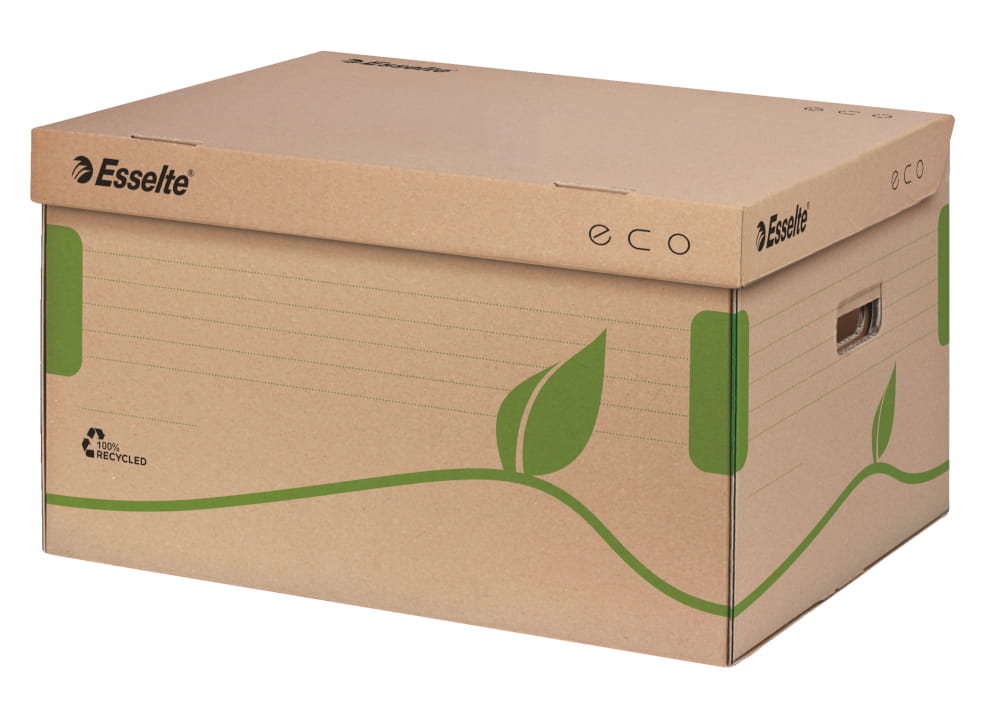Wybierając kontenery Eco, korzystasz z efektywnego rozwiązania do archiwizacji dokumentów i przyczyniasz się do ochrony naszej planety. Produkt wykonany w 100% z kartonu pochodzącego z odzysku; z 85% udziałem surowców pochodzących z odpadów konsumpcyjnych. W 100% zdatne do recyklingu, posiada certyfikat FSC®.