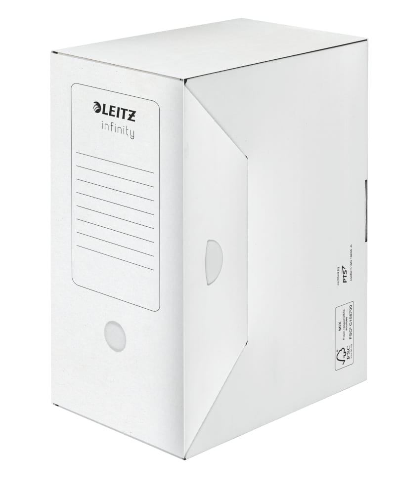 Produkty Leitz Infinity spełniają wymagania normy ISO 16245 określającej standardy do długoterminowej archiwizacji dokumentów. Produkty są bezkwasowe, zostały przetestowane i są potwierdzone certyfikatem wydanym przez Paper Technology Specialists w Niemczech.