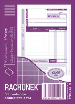 Rachunek dla zwolnionych z VAT (pion) / 232-5