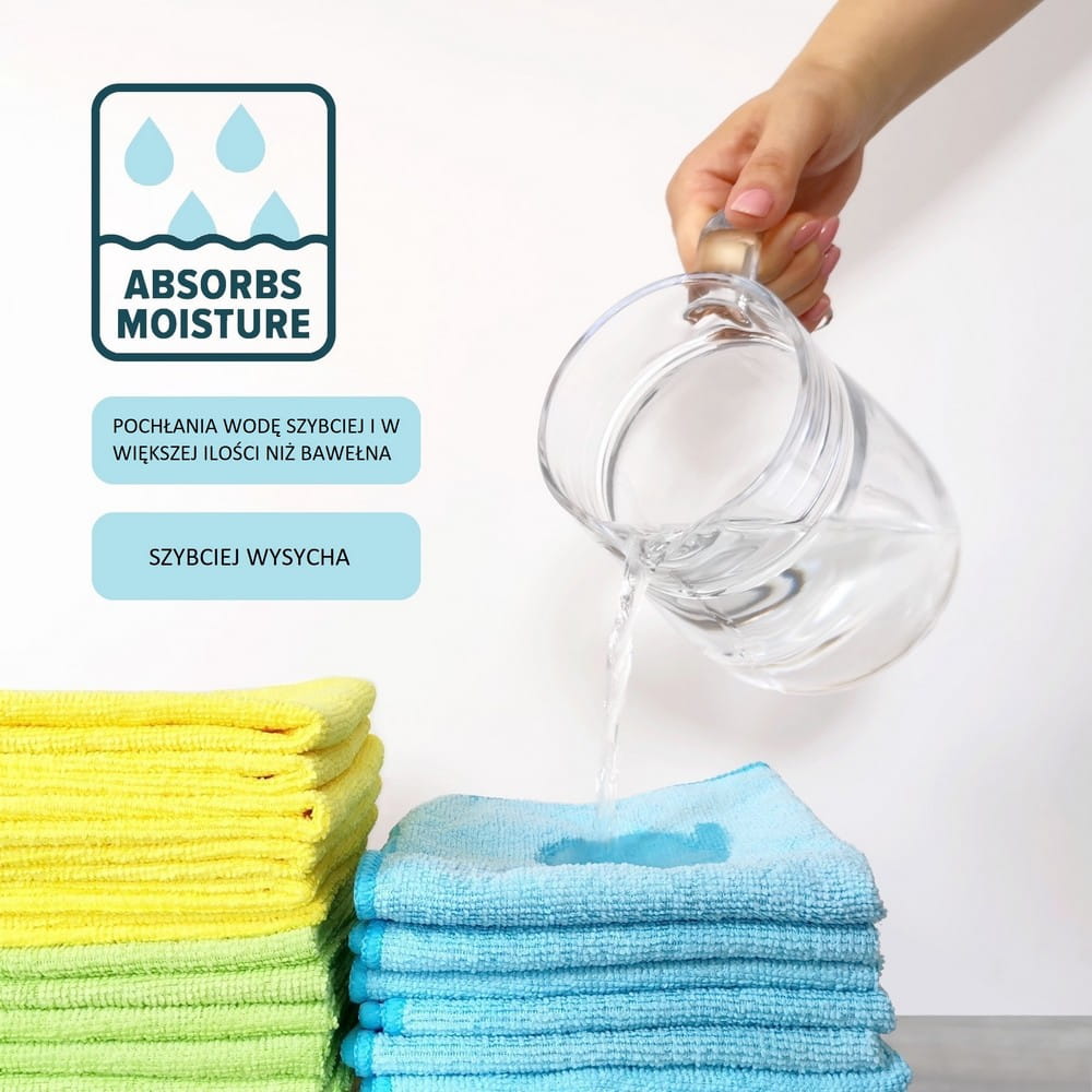 - Dzięki unikalnej strukturze mikrowłókien, ściereczki są niezwykle chłonne, a przy tym bardzo szybko schną.