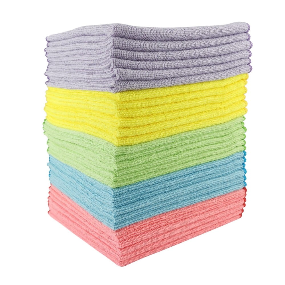 Ściereczki z mikrofibry w 5 kolorach do skutecznego usuwania brudu, tłuszczu i kurzu.