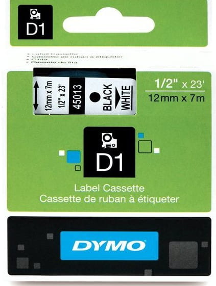 Taśma do drukarki DYMO D1 12/7 czarna/biała 45013 n/o