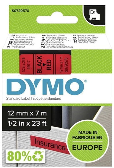 Taśma do drukarki DYMO D1 12/7 czarny/czerwony 45017 n/o