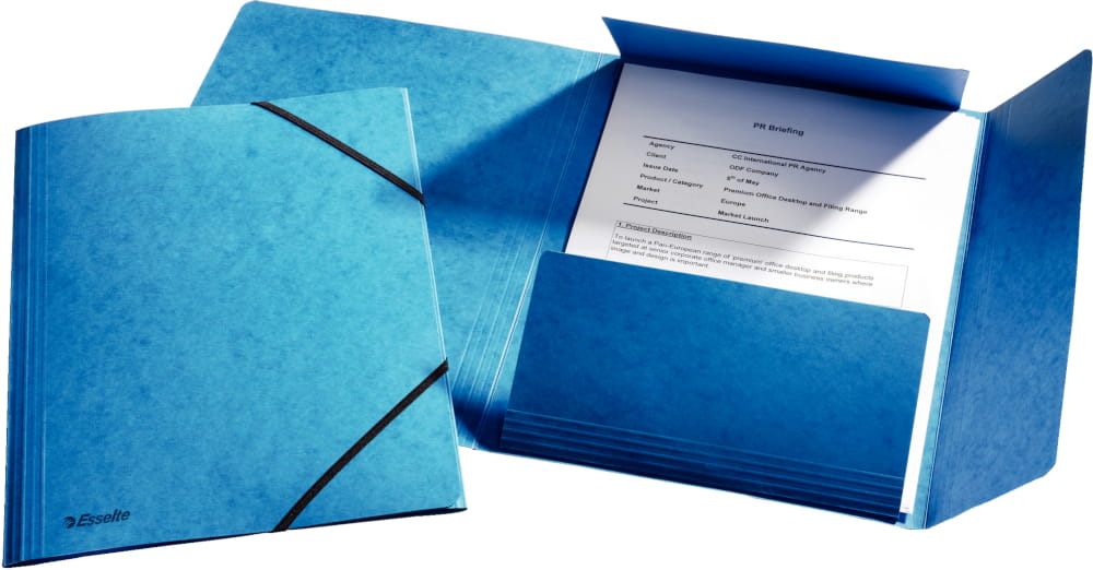 Teczka z gumką, w śmiałych kolorach, do praktycznego zarządzania dokumentami.