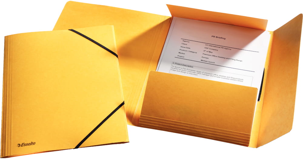 Teczka z gumką, w śmiałych kolorach, do praktycznego zarządzania dokumentami.