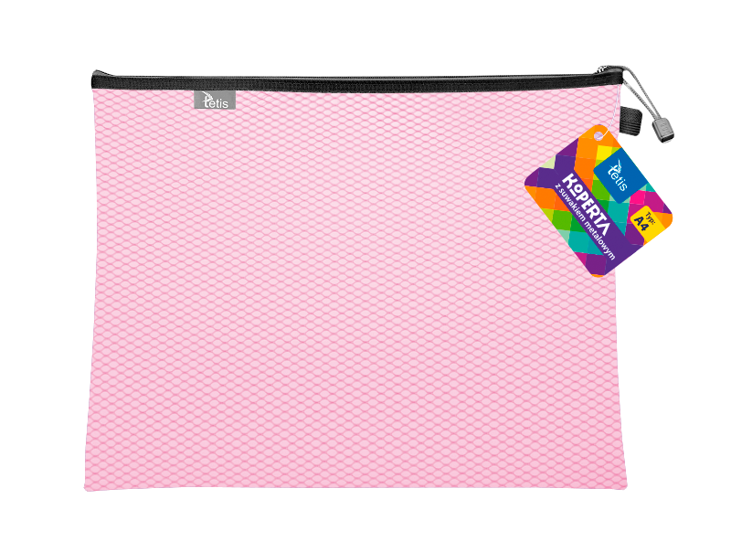 Teczka kopertowa na suwak Tetis A-4, różowa