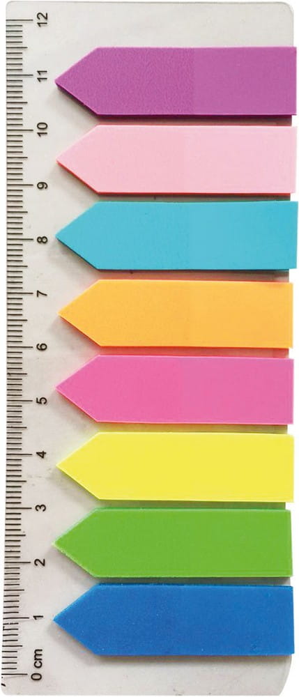 Zakładki indeksujące D.Rect strzałki z linijką PET 45×12 mm neonowe 8×25 sztuk
