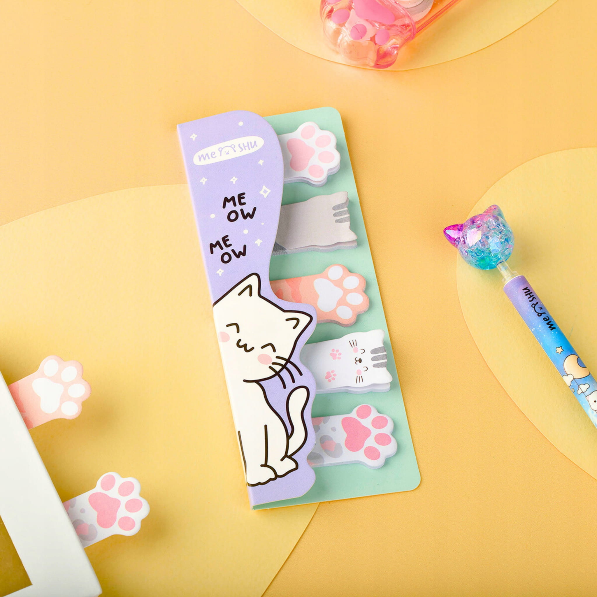 Zestaw karteczek samoprzylepnych Meow Paws z zakładkami indeksującymi od firmy MESHU – idealne do organizacji z uroczymi kotkami!