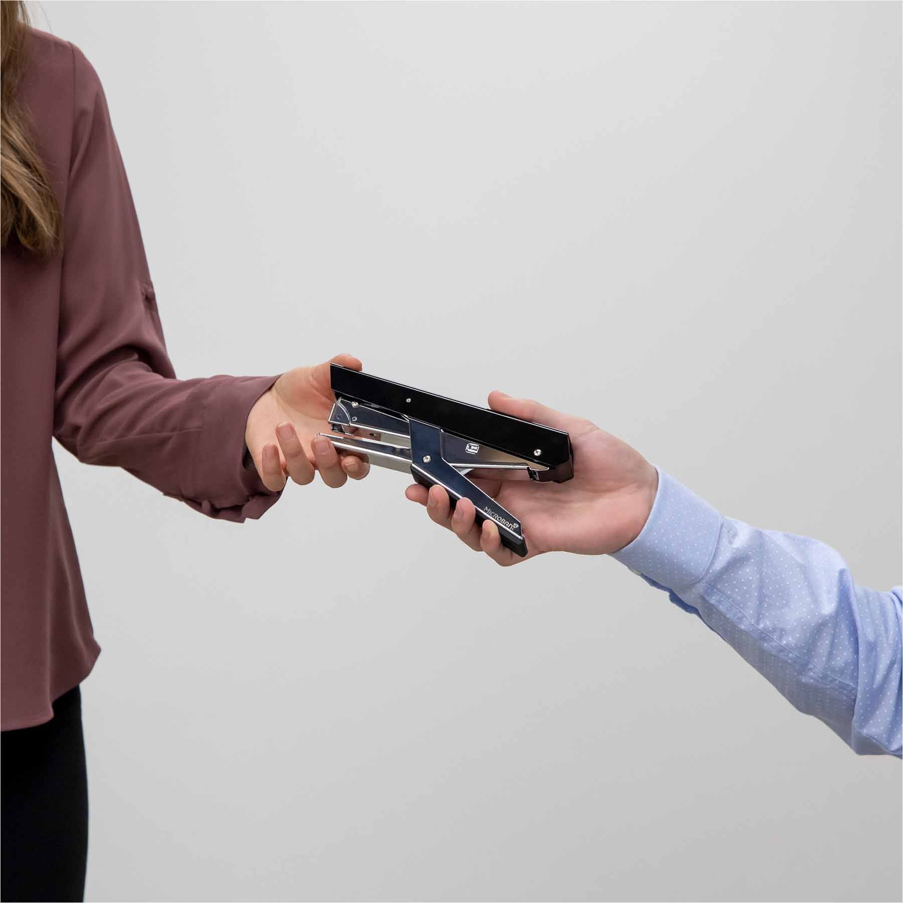 - Wytrzymałe, wysokiej jakości, metalowe rączki w układzie nożycowym zapewniają bezproblemowe zszywanie