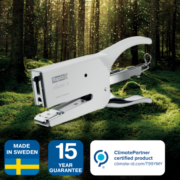 Zszywacz nożycowy Rapid to połączenie skandynawskiej precyzji, trwałości i ekologicznej odpowiedzialności.