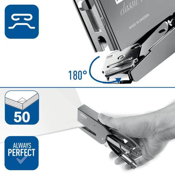 Rapid Classic K1 to legendarny zszywacz nożycowy, produkowany w Szwecji od ponad 80 lat. Łączy klasyczny wygląd, solidną stalową konstrukcję oraz niezawodność, dzięki czemu doskonale sprawdzi się zarówno w biurze, pracowni, jak i przy zastosowaniach tapicerskich czy dekoracyjnych.