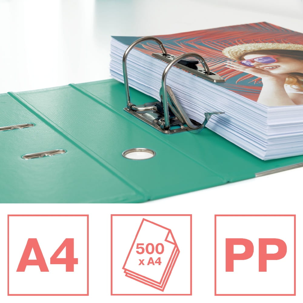 - Styl i lekkość – nowoczesny tłoczony wzór Colour’Breeze w pastelowej zieleni nadaje segregatorowi wyjątkowego charakteru.