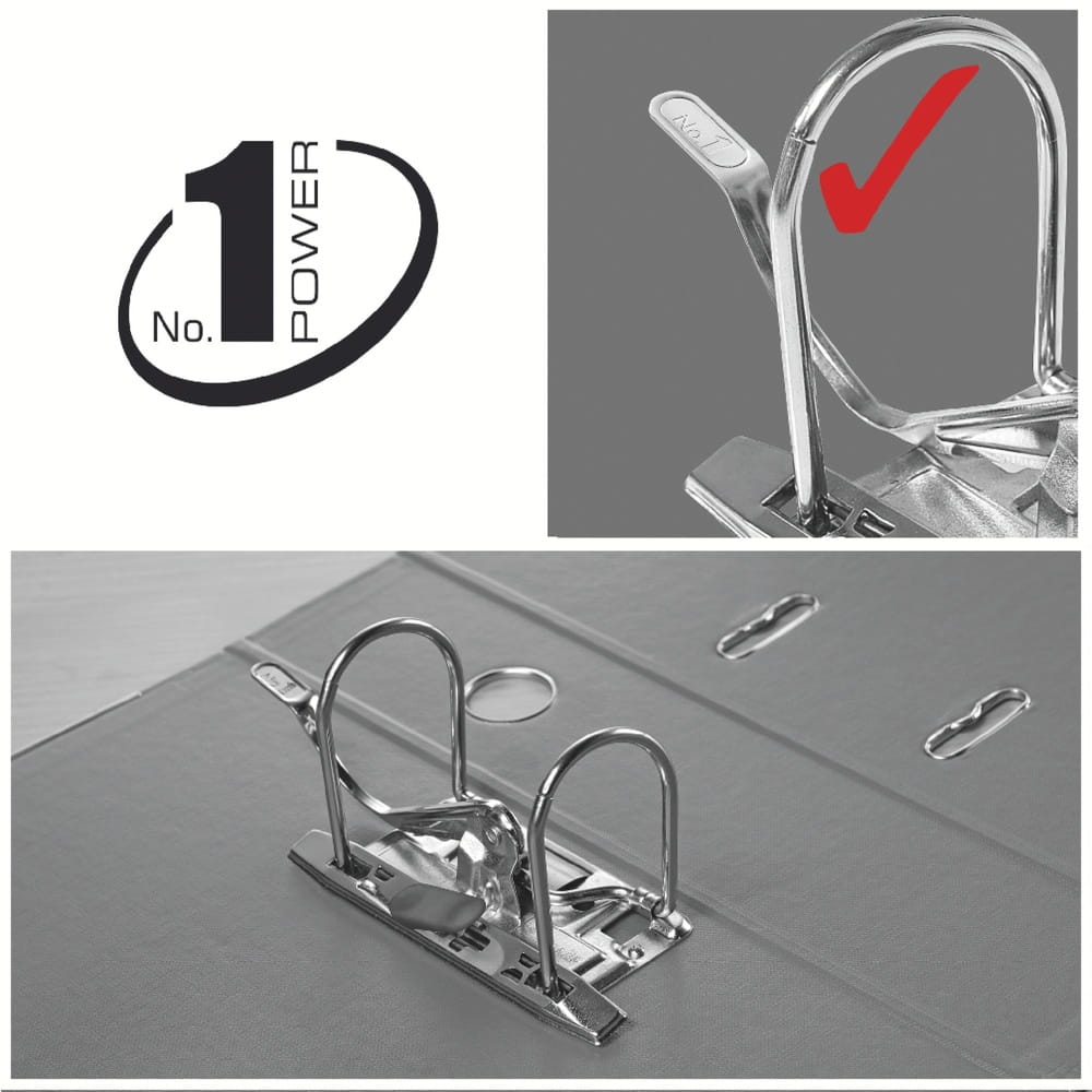 - Pojemny grzbiet – szerokość 75 mm pozwala zmieścić do 500 kartek A4 (80 g/m²),