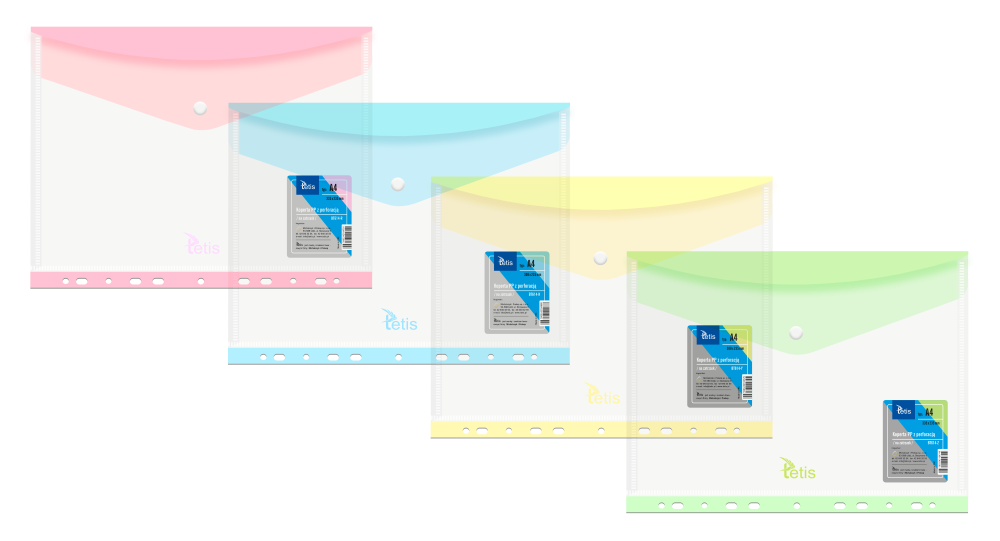 - Dostępna jest w różnych kolorach: niebieskim, różowym, zielonym i żółtym, co pozwala na kolorystyczne kategoryzowanie dokumentów.