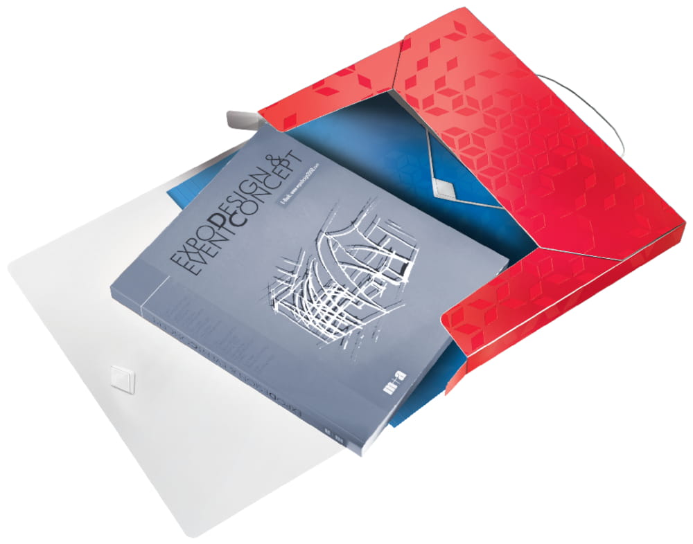 - Mieści teczki z gumką (o grzbiecie 15 mm), albumy ofertowe, standardowe teczki i koszulki