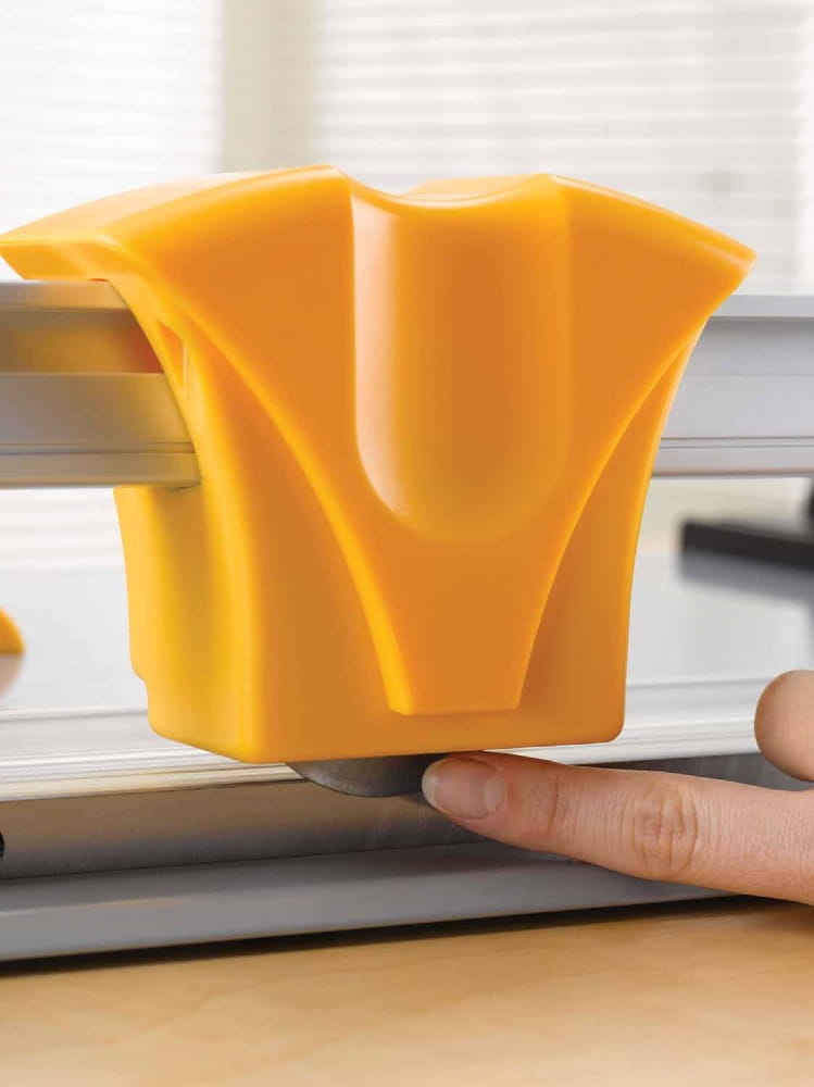 - Utwardzone ostrze SafeCut™ ze stali nierdzewnej zintegrowane w karetce umożliwia przecinanie jednorazowo dużej ilości dokumentów